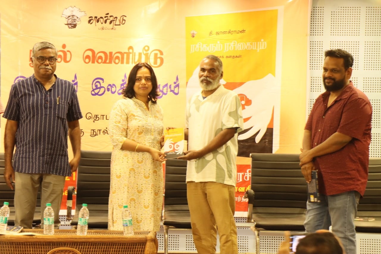 ‘ரசிகரும் ரசிகையும்’ நூல் குறித்துப் பேசிய எழுத்தாளர் ஜே.பி. சாணக்யா, தி.ஜாவின் கதைகளில் கவனிக்கத் தவறிய எளிமையாகக் கடந்துசென்ற செய்திகளைக் கவனப்படுத்த இச்சிறுகதைத் தொகுப்பு துணைநிற்கிறது என்றார். இத்தொகுப்பில் இடம்பெற்றுள்ள பத்து சிறுகதைகளும் வாசிக்கப்பட வேண்டியவை. அவற்றில், ‘ரசிகனும் ரசிகையும்’, ‘செய்தி’ ஆகிய கதைகளை எடுத்துக்கொண்டு பேசினார். தி.ஜாவின் கதைசொல்லல் முறை, மொழிநடை, சொல்வழக்கு, கதைமாந்தர் இயல்பு, கதையின் கச்சிதத் தன்மை போன்றவற்றை ரசனையோடு விளக்கினார். தி.ஜாவை மீள்வாசிப்புச் செய்ய உதவும் தொகுப்பாக, ‘ரசிகரும் ரசிகையும்’ நூலைக் காண்பதாகக் கூறினார். தி.ஜாவின் எழுத்துகளை மிக நுண்மையான பார்வையில் அணுகி, சுவாரசியமான உரையை நிகழ்த்தினார் சாணக்யா.