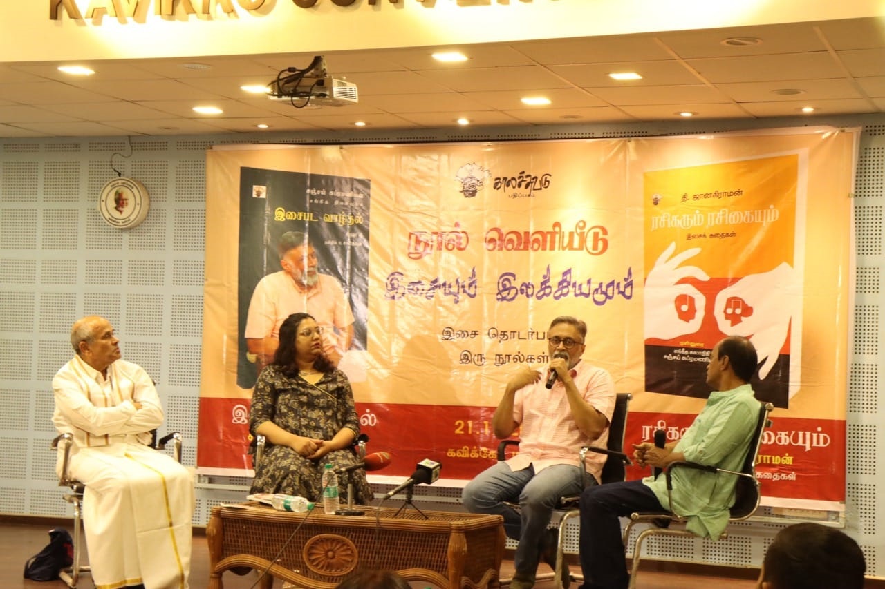 சென்ற டிசம்பர் 21 ஞாயிற்றுக்கிழமை அன்று சென்னை கவிக்கோ மன்றத்தில், சங்கீத காலநிதி சஞ்சய் சுப்ரமணியனின் சங்கீத நினைவுகள் ‘இசைபட வாழ்தல்’ தமிழில்: ப. சகதேவன், தி. ஜானகிராமனின் இசைசார் சிறுகதைகள் அடங்கிய, ‘ரசிகரும் ரசிகையும்’ (தொகுப்பு: சுகுமாரன்) ஆகிய இரு நூல்களின் வெளியீட்டு நிகழ்ச்சி நடைபெற்றது. இந்நிகழ்வில், ‘இசைபட வாழ்தல்’ நூலை இதழாளர் ப. கோலப்பன் வெளியிட, நீலம் மாத இதழ் ஆசிரியர் வாசுகி பாஸ்கர் பெற்றுக்கொண்டார். ‘ரசிகரும் ரசிகையும்’ நூலை எழுத்தாளர் ஜே.பி. சாணக்யா வெளியிட, மொழிபெயர்ப்பாளர் ரீனா ஷாலினி பெற்றுக்கொண்டார்.