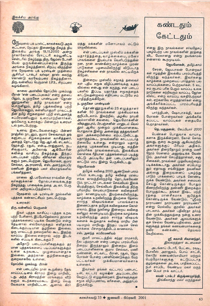 காலச்சுவடு ஜனவரி - பிப்ரவரி 2001 பதிவு இலக்கிய அரங்கு