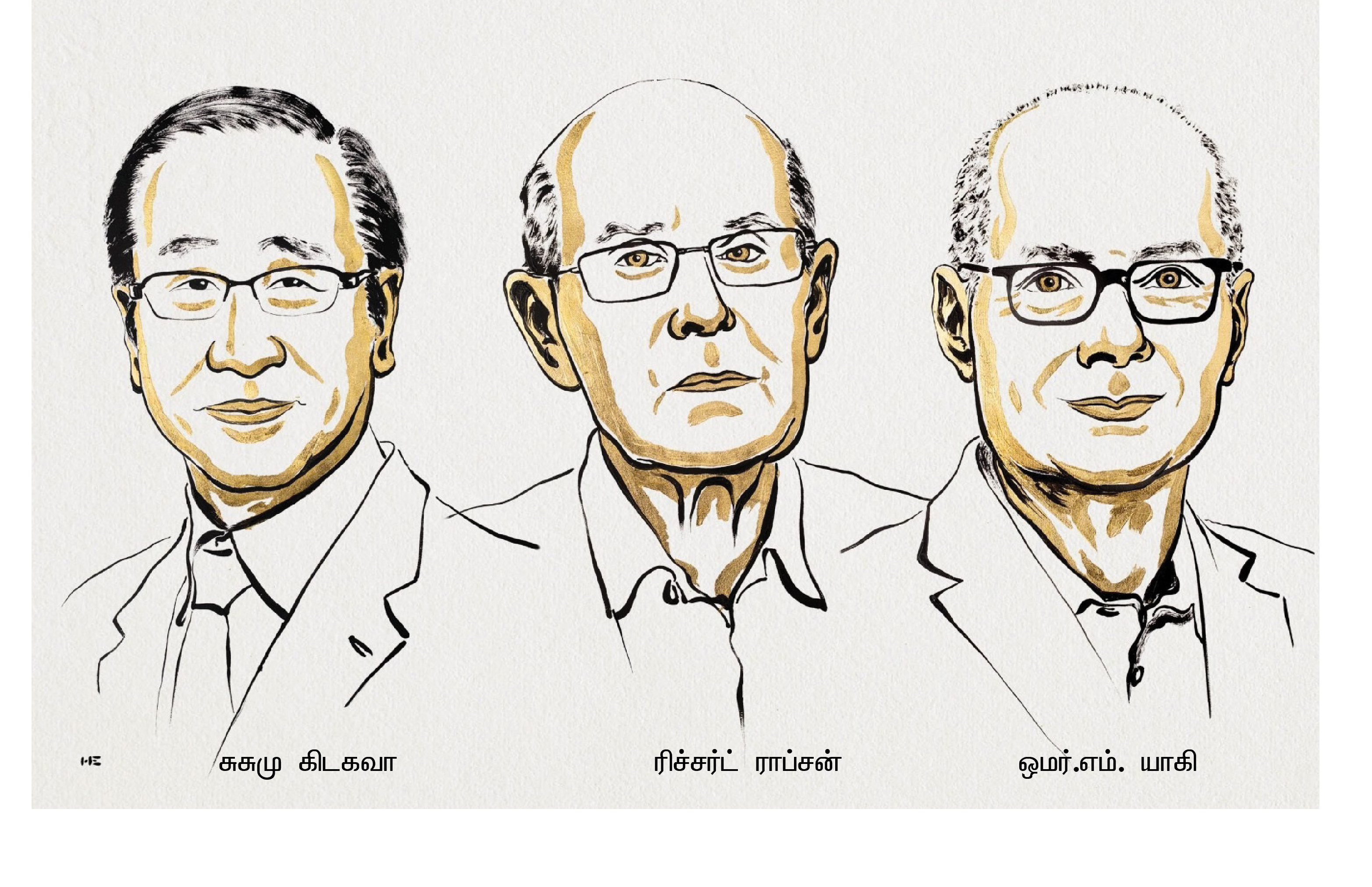நோபல் விருதுக் குழுவுடனான நேர்காணல்களில் மூவரும் தங்கள் வாழ்விலிருந்து சிலவற்றைச் சுட்டிக் காட்டுகிறார்கள். 15 வருடத் தொடர் தோல்விகளிலும் தான் சார்ந்த துறையில் சளைக்காத அர்ப்பணிப்பும் உழைப்பும் 88 வயதில் தன்னை எங்கே கொண்டுவந்து நிறுத்தியிருக்கிறது எனத் திரும்பிப் பார்க்கிறார் ரிச்சர்ட் ராப்சன். கிடைக்கிற வாய்ப்புகளை எல்லாம் பயன்படுத்தி வாழ்வனுபவத்தையே தனது சொத்தாக ஆக்கிக்கொள்ளும் ஒரு ஆய்வாளரின் மனம் கொண்டவராயிருக்கிறார் சுசுமு கிடகவா. எழுதப் படிக்க வாய்ப்பில்லாதவர்களுக்கு மகனாகப் பிறந்து, ஆடு மாடுகள் உட்படக் கிட்டத்தட்ட 12 பேருடன் ஓர் அறையில் அகதி வாழ்வு வாழ்ந்து, “உலகின் எல்லா அசமத்துவத்தையும் சரிப்படுத்தும் மிகப்பெரிய சக்தி அறிவியல்” எனச் சொல்கிறார் ஒமர்.எம். யாகி. இந்தச் சொற்கள் வேதியலாளர்களுக்கு மட்டுமான செய்தி அல்ல; அவர்களின் பங்களிப்பைப் போலவே எல்லோருக்குமானவை.