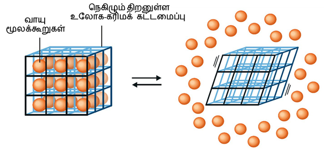 கட்டிடங்களில் உள்ள தூண்கள் சந்திக்கும் புள்ளி உலோக அணுக்கள் என்றால் அந்தத் தூண்களின் சுவர் கரிமச் சேர்மங்கள். எப்படி வீடுகளில் நாம் வந்து செல்கிறோமோ அதைப்போலத்தான் இந்த நுண்ணறைகளில் வாயுக்களும் இன்ன பிற சேர்மங்களும் உள்ளே வந்துசெல்ல இயலும். காற்றிலுள்ள கரியமில வாயு உள்ளிட்ட வெப்பமயமாதலுக்குக் காரணமான வாயுக்களைத் தனியே பிரித்தெடுக்க இயலும். எரிபொருளாகப் பயன்படும் ஹைட்ரஜனைப் பாதுகாப்பாகச் சேமித்து வைக்க இயலும். ஆனால் அத்தகு உலோக-கரிமக் கட்டமைப்புகளை எளிதாக உருவாக்க இயலவில்லை. பெரும்பாலானவை நிலைத்தன்மையற்றதாயிருந்தன. அத்தகைய முயற்சிகளில் அடுத்தடுத்து வென்றவர்களே கியோட்டோ பல்கலைக்கழகப் பேராசிரியர் சுசுமு கிடகவாவும் கலிஃபோர்னியா பல்கலைக்கழகப் பேராசிரியர் ஒமர் எம் யாகியும். இவர்கள் முறையே 1998 , 1999 களில் வாயுக்களைத் தன்னகத்தே சேமித்து வைக்கும் உலோக-கரிமக் கட்டமைப்புகளை உருவாக்கினர்.